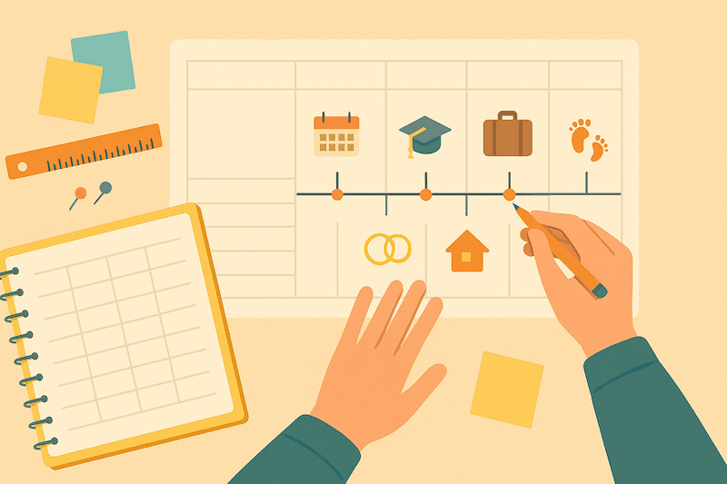 ノートや大きな紙、あるいは使い慣れた表計算ソフトを用意し、縦軸に「西暦」「年齢」「その時の立場(学生・社会人など)」といった時間を示す項目を設けます。