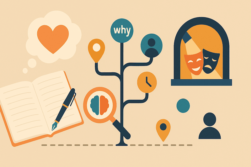 「何が起こったか」だけでなく、その時に「どう感じたか」「何を考えていたか」、そして「なぜその行動を選んだのか」という内面を丁寧に描きましょう。